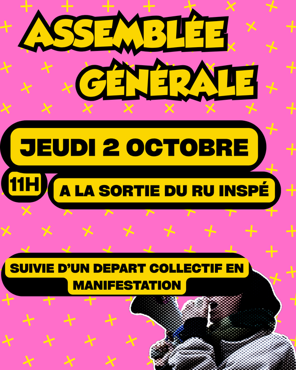 Les étudiant.es de l'AG INSPé appelle à une Assemblée Générale à 11h avant de partir ensemble à la manif appelée par l'intersyndicale.