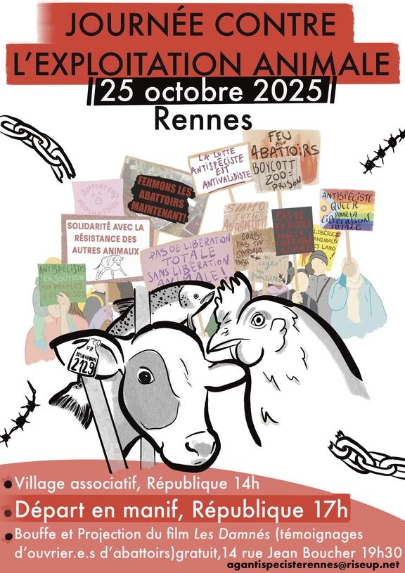 Journée contre l'exploitation animale : village associatif, manif, projection
