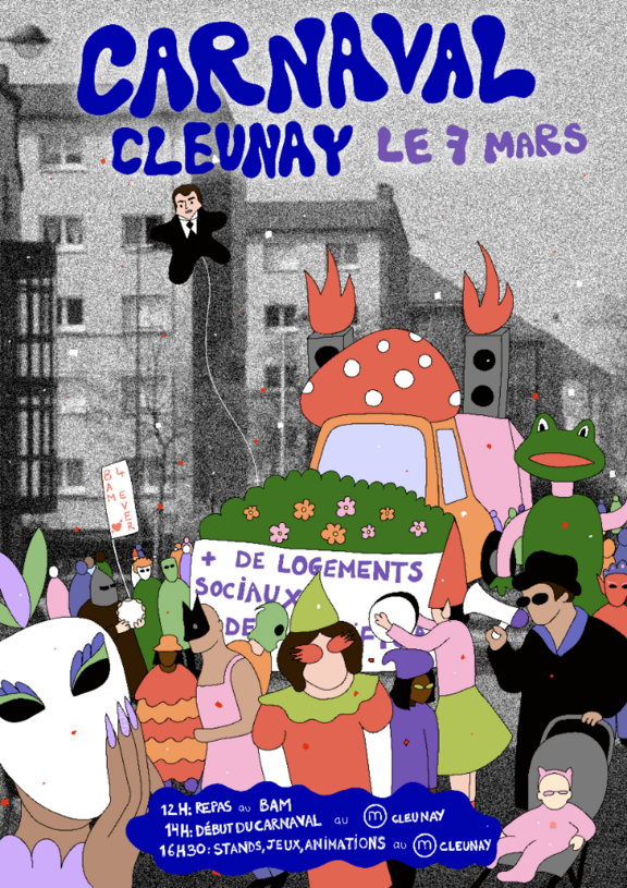 Ça tombe bien, on a une super proposition : faire notre propre carnaval pour foutre la honte à la mairie de Rennes, NéoToa et leurs projets de gentrification de Cleunay. Parce que vous ne le savez peut-être pas, mais le Bâtiment À Modeler doit être vidé cet été 2026 pour être détruit par la mairie ensuite et que NeoToa construise des immeubles privés, tout en mettant dehors les habitant.e.s les plus précaires du quartier. Alors on aimerait mobiliser un maximum de monde sur ce sujet, le tout en s'amusant comme des petit.e.s lutin.e.s, viens!